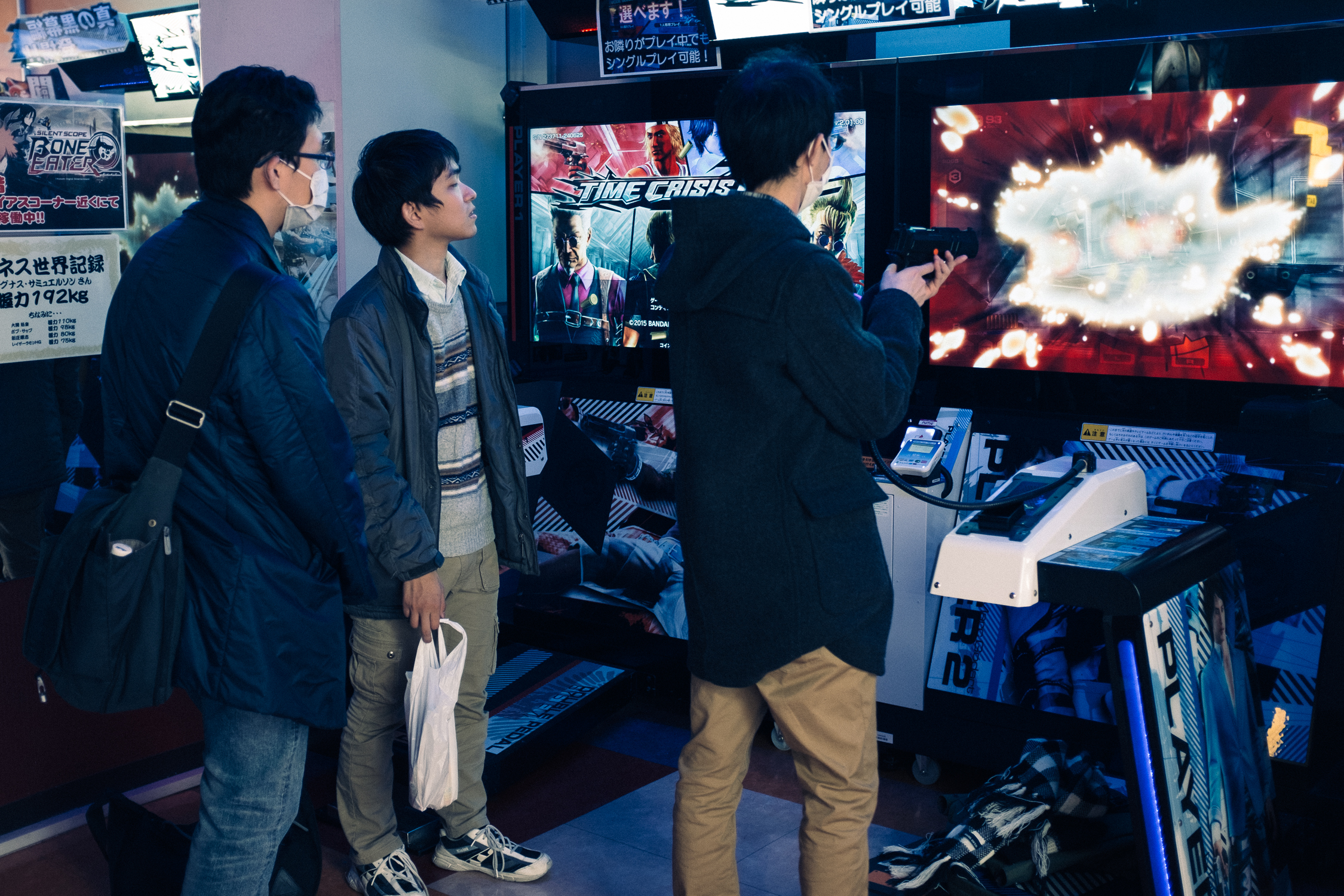 Jeunes japonais jouant à des jeux vidéos à Tokyo