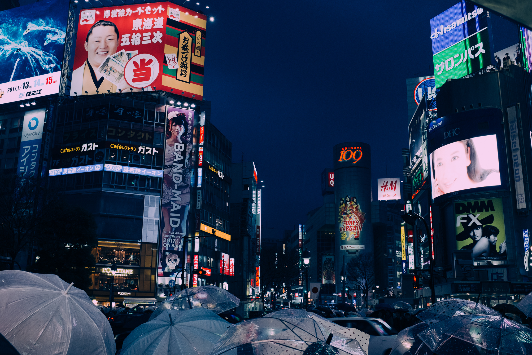 Par temps de pluie les rues de Sibuya se couvrent des parapluies de leurs passants